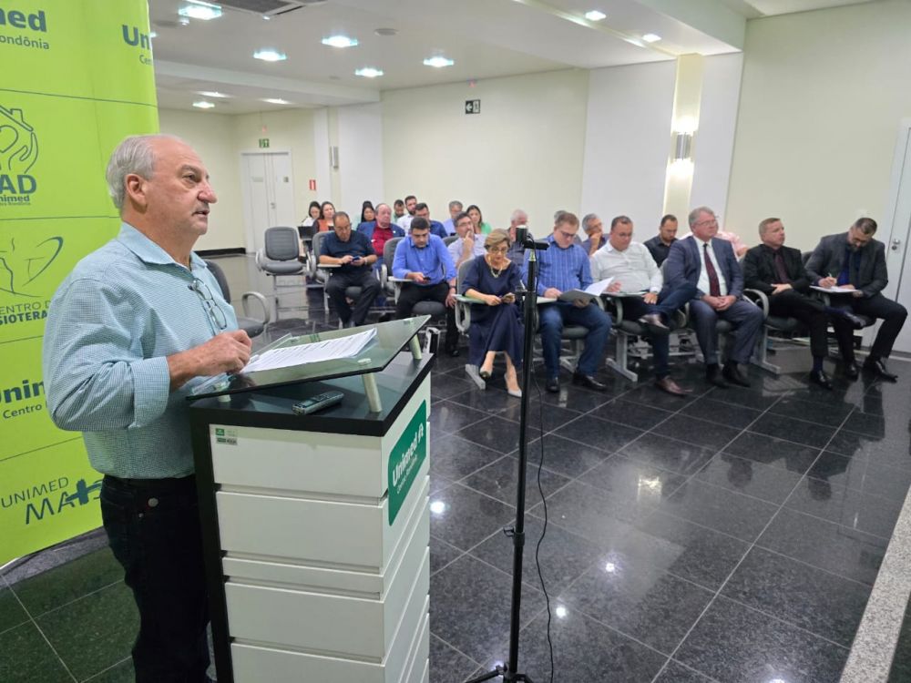 Finalizando a reunião, Dr. Alcilio de Souza fez o pronunciamento dizendo: "Quero expressar minha profunda gratidão a todos os cooperados da Unimed Centro Rondônia pela confiança depositada ao me reelegerem como Diretor Presidente. É uma honra e um compromisso renovado para mim. Reforço aqui o nosso compromisso com uma gestão pautada pela transparência, governança e, principalmente, pela participação ativa e colaborativa de todos os cooperados. Juntos, continuaremos a construir uma cooperativa ainda mais sólida e comprometida com a excelência em saúde para nossos beneficiários."