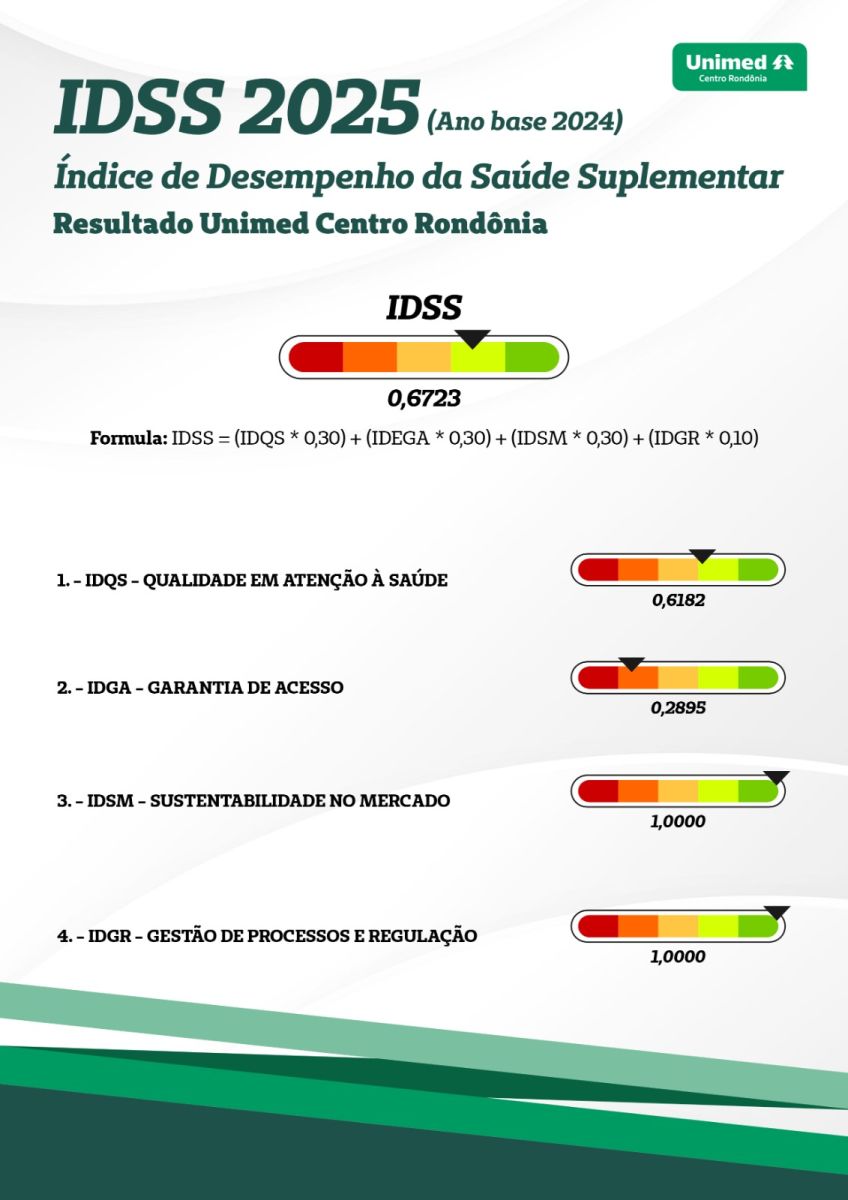 A Agência Nacional de Saúde Suplementar (ANS) publicou o Índice de Desempenho da Saúde Suplementar (IDSS) 2025 que tem como referência o ano base de 2024, onde a Unimed Centro Rondônia elevou a classificação para 0,6723